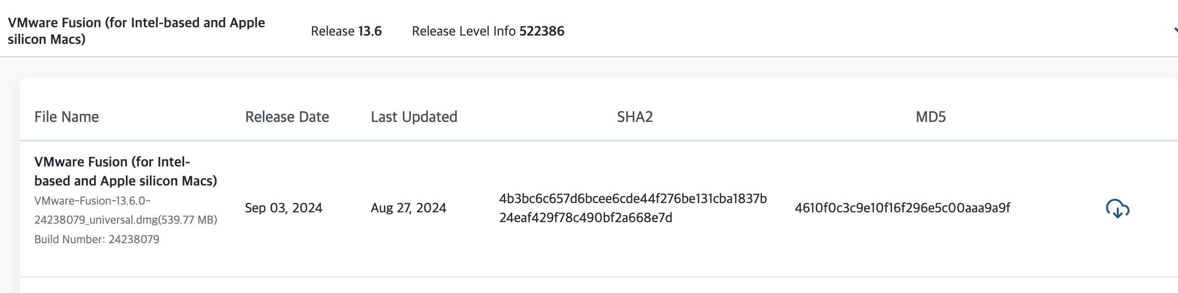 브로드컴에서 VMware Fusion 다운