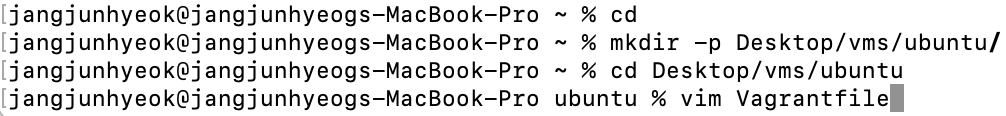 Desktop/vms/ubuntu 경로에 Vagrantfile 생성